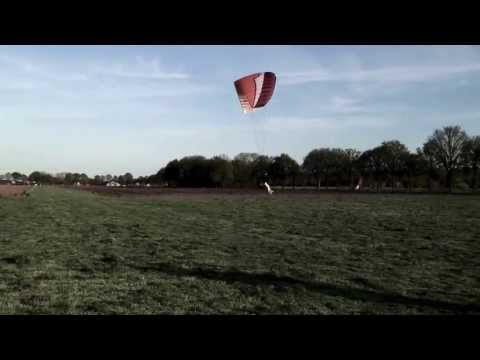 Moergestel, na een heerlijk zonnige dag met weinig wind, grondoefeningen, met de quad de lierlijnen halen aan de andere kant van het lierterrein, lekker relaxen etc. hebben Rave en ik onze eerste paragliding liervlucht gemaakt.